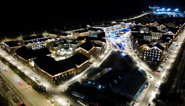 2021年12月21日,张家口冬奥村内建筑开灯迎接全要素测试。新华社记者杨帆摄