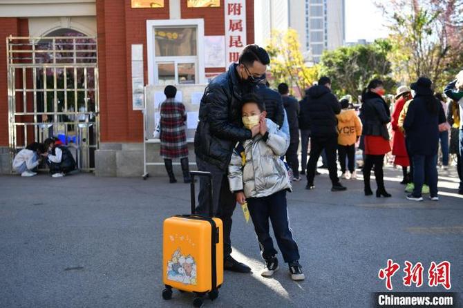 7日上午11时,在位于昆明市呈贡区的四川师范大学附属昆明实验学校门口,二年级的范同学拉着行李箱冲出校门,和两周没见的爸爸紧紧拥抱。情绪平复后他告诉记者,“我不害怕,老师说有很多医护人员在保护我们,疫情总会过去的。”