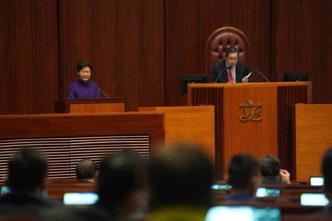 这次会议是香港特区行政长官答问会,林郑月娥首先发言,之后回答议员们提出的质询。