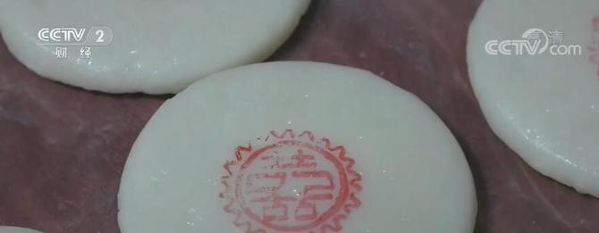 糍粑的制作方法比较简单,以前打糍粑需要人工打,耗时又耗力。现在随着科技的进步,打糍粑这一环节已经被机器代替。蒸好的糯米经过机器的碾压,再用手卷成一个个大小相同的圆球放置在案板上,随后再用手把圆球压制成大小相同的圆饼,最后再用带有“囍”字的红章在每一个糍粑上做好标记。就这样,一个个寓意团团圆圆的糍粑便做好了。