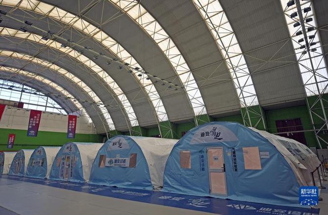 这是1月13日拍摄的位于天津市滨海新区汉沽网球馆内的气膜实验室。新华社记者赵子硕摄