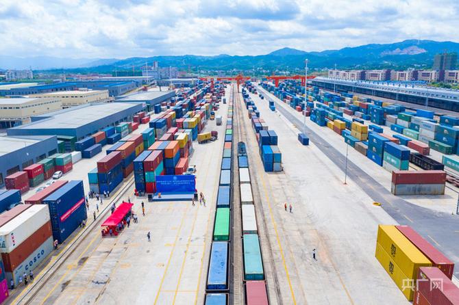 繁忙的赣州国际陆港(央广网发 赣州市委宣传部供图)