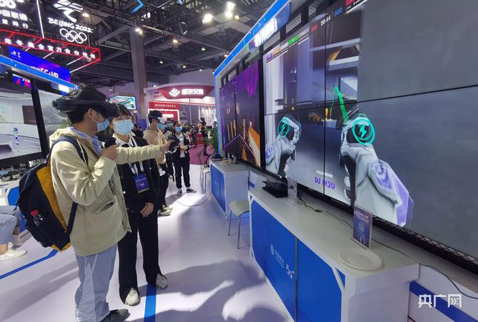 游客在2021世界VR产业博览会大会展区体验虚拟技术(央广网记者 王一凡 摄)