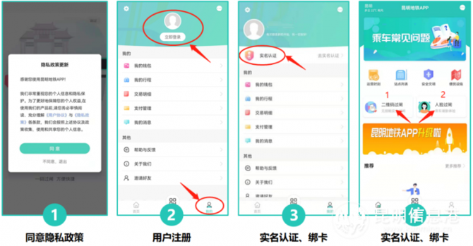 2021年8月20日起,乘客可以通过手机应用市场或扫描下方二维码下载“昆明地铁APP”或“中国建设银行APP”,开通昆明地铁“刷脸乘车”业务。