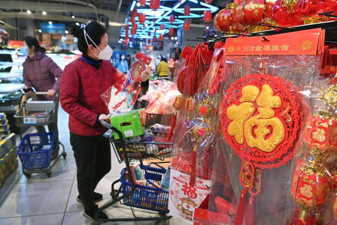 1月15日,西安市曲江新区的居民在一家商场购物。