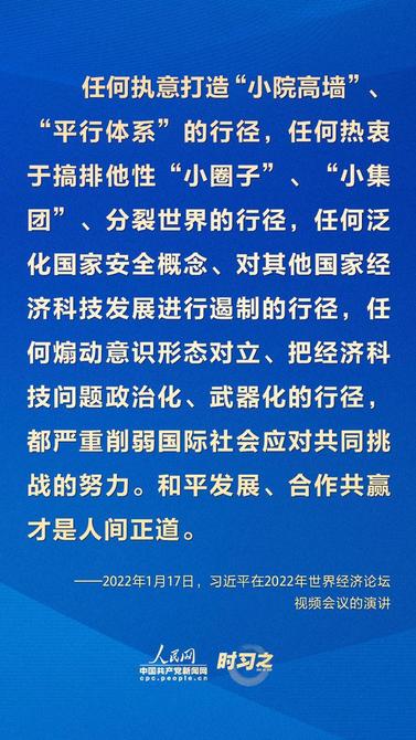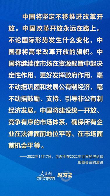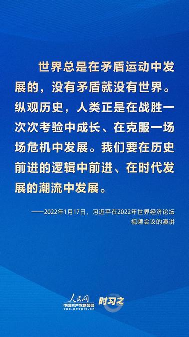 1月17日,国家主席习近平在北京出席2022年世界经济论坛视频会议并发表题为《坚定信心 勇毅前行 共创后疫情时代美好世界》的演讲,强调要在历史前进的逻辑中前进、在时代发展的潮流中发展。