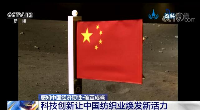 我国首次登月展示的“织物版”月面国旗,它能在低重力、空气稀薄的环境下柔顺地展开,其中蕴含着大量科技创新,可以说,中国纺织业正在朝着一个个创新高峰在攀登,国旗在月球上的徐徐舒展就是中国纺织业的一大步。
