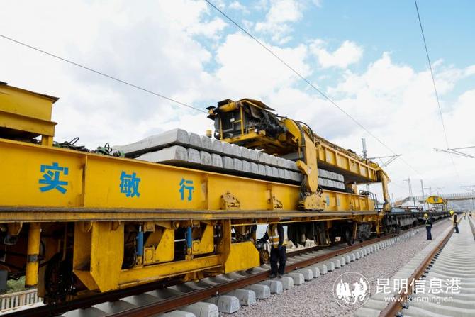 面对铺轨作业标准高、工期紧、连续长大坡道运输给铺轨施工带来的巨大挑战,滇南建设指挥部组织中铁三局等施工单位强化标准化管理,创新施工工艺,改造机械设备,采用机械化、自动化铺轨机组和施工信息化等手段,大幅提高了轨道精度和安全保障。