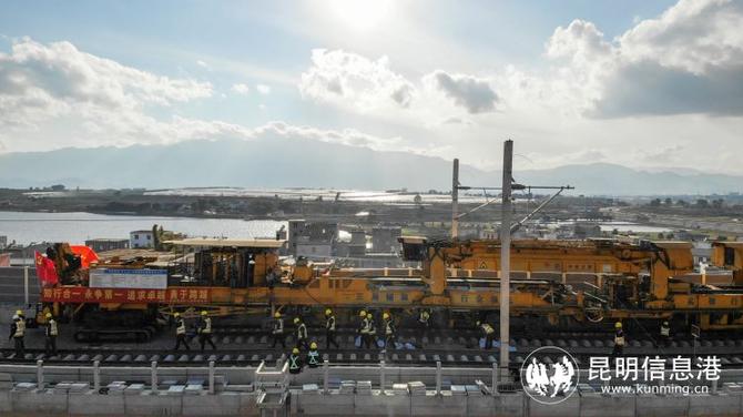 昆明信息港讯 记者上官艳君 1月20日9时许,在云南红河高铁站内,新型长轨牵引车将最后一组500米长钢轨精准推送到位标志着我国首条民族自治州内城际高铁——弥(勒)蒙(自)高铁全线铺轨完成,转入联调联试阶段,向着年内开通运营目标迈出了重要一步。
