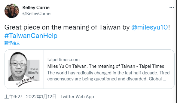 其次,在向《台北时报》投书以后,余茂春还接受了反华媒体的采访,中间提到美国对台政策从来就没有“战略模糊”,要在亚洲形成像北约一样的多边型同盟关系对抗中国。