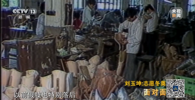 刘玉坤:第一次进假肢厂害怕,因为没见过。以前假肢特别落后,两边带轴承,带大铁架子连着那种,腿做的就跟穿鞋不跟脚似的,手都能伸到腿里,来回戳你皮,那腿磨得跟血葫芦一样,遭老罪了。刚开始不会站,不会走,不会上楼梯。