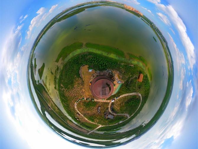 空中俯瞰绿屏·八里湾美景(央广网发 津南区融媒体中心供图)