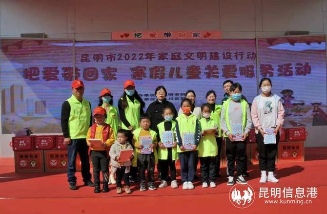 昆明信息港讯 记者李红鸾 为宣传贯彻《中华人民共和国家庭教育促进法》,引导广大家长依法带娃,科学育娃,助力儿童安全健康快乐成长, 1月24日,云南省妇联联合昆明市妇联在东川区碧谷街道桥北社区牵头举办“把爱带回家—送法到家 让孩子健康成长”2022寒假儿童关爱服务活动。
