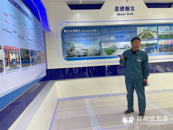 在龙佰集团云南基地(原名云南冶金新立钛业有限公司)前厅内,陈列着各样的钛产品及其应用领域的产业链图。
