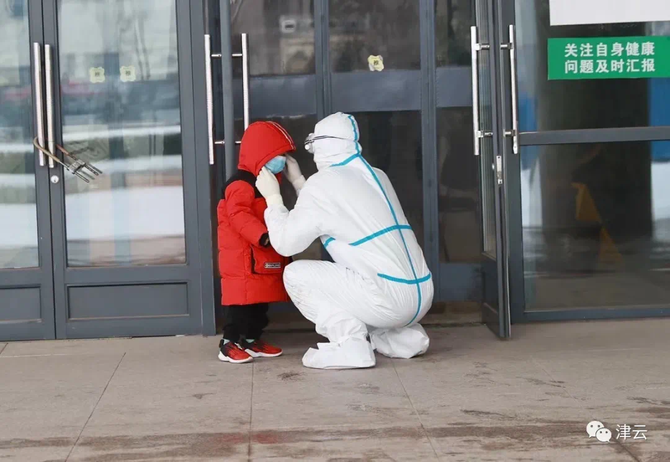 1月22日,第一个孩子走出海河医院,拎着一包大大的旺旺雪饼,径直走到了雪地里,开心地团了一个雪球,看了看身边穿着隔离服的医护人员,却又犹豫了,不知该丢向哪里。他才只有3岁……当记者以为一身红衣的他最终定然会丢出这枚“炮弹”时,他却轻轻放在台阶上,转过身扑向医护人员:“阿姨,我要嘘嘘——”“宝,我们能不能再忍一会,现在你返身进医院的大楼,又要消毒1个多小时。或者,我们用垃圾袋……”“妈妈说,要听医护阿姨的话。可是妈妈也说,我是小男子汉,不能在外面嘘嘘——”“好,宝,跟开救护车的叔叔走。叔叔有本事……”