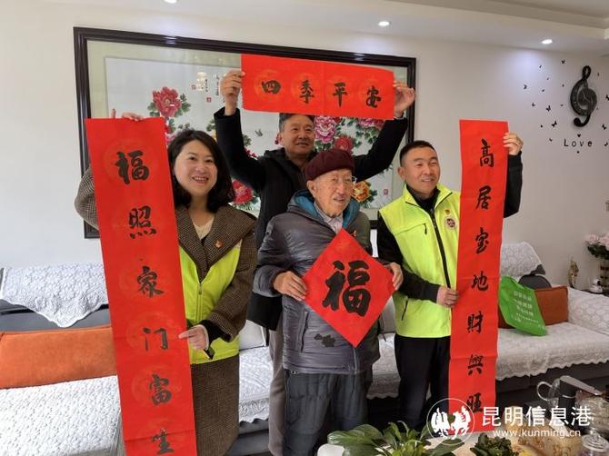 昆明信息港讯 记者段佳琪 春节将至,暖意先行。1月25日,呈贡区龙潭山社区携手大党委共建单位、物业、居民、志愿者开展“和谐邻里·春暖花开”新春送福上门活动。