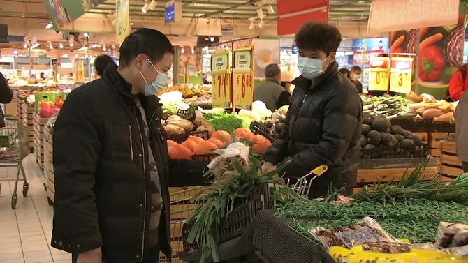 西安市民在超市购买蔬菜等