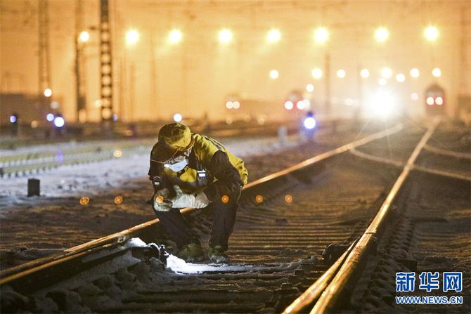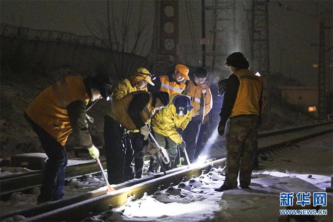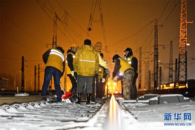 连日来,豫西南迎来较大降雪,焦柳、宁西线的轨道出现积雪。为确保春运线路安全畅通,中国铁路郑州局集团有限公司南阳工务段迅速启动应急预案。党员干部职工闻雪而动,利用临时天窗口,进行打冰除雪作业,确保管内线路设备无积雪、无结冰,确保铁路春运安全有序。新华网发(张中海摄)