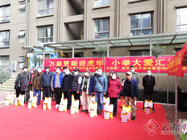 1月25日,在新春佳节即将到来之际,昆明市官渡区关上街道石虎关社区开展2022年“万象更新迎虎年小举大爱汇温暖”新春慰问活动,对辖区高龄党员、困难群众及热心公益人员等群体的亲切关怀,让他们过上一个欢乐、安定的春节,营造团结和谐、喜庆祥和的浓郁氛围。