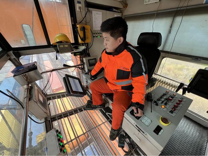 年纪不大的郑雨双,不知不觉也带了不少徒弟,95年出生的周陈就是其中之一。“最开始的话,会感觉晕车,操作的时候会向前向后,还会停下,开始不习惯没做过这个会感觉头晕。”周陈说,在外人看来,操纵一个30米高的庞然大物,很是威风。其实个中甘苦只有自己最清楚。