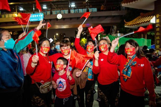 “解封啦!深圳,加油!”解除封控的居民们挥起五星红旗,欢呼起来。
