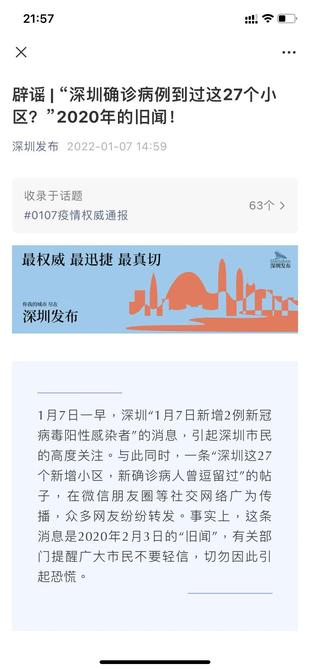晶报记者立即调查求证,发现这条帖子原来是2020年2月3日的“旧闻”,发布的是2020年2月2日深圳的疫情相关情况,与2022年深圳新增2例新冠病毒阳性感染者的情况没有任何关联。当天下午14:59分,深圳发布公号推送辟谣消息报道,很快在深圳人的朋友圈刷屏。政府部门和新闻媒体密切合作,迅速阻止了谣言的传播。