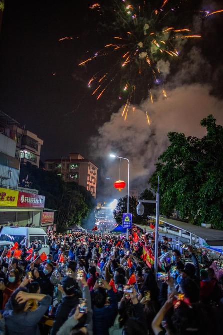 ▲1月26日零点,罗湖区清水河街道鹤围村31栋至92栋解除风控,58栋、64栋两区域由中风险地区调整为低风险地区,居民们欢呼庆祝。