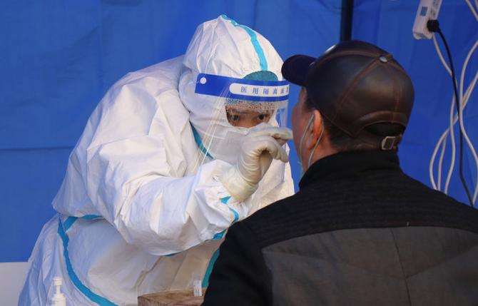 当日8时起,天津市河北区在望海楼街道、江都路街道、光复道街道、鸿顺里街道等重点区域内开展全员核酸检测。新华社记者 孙凡越 摄