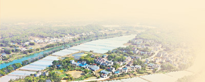 江西省赣州市会昌县文武坝镇凉舟村,蔬菜大棚与河流、绿树、农房相互映衬,构成一幅秀美的新农村画卷。朱海鹏摄(影像中国)