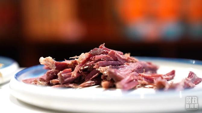 △平遥牛肉色泽红润,按口味分类有原味、五香味、麻辣味。(总台央视记者曹亚星拍摄)