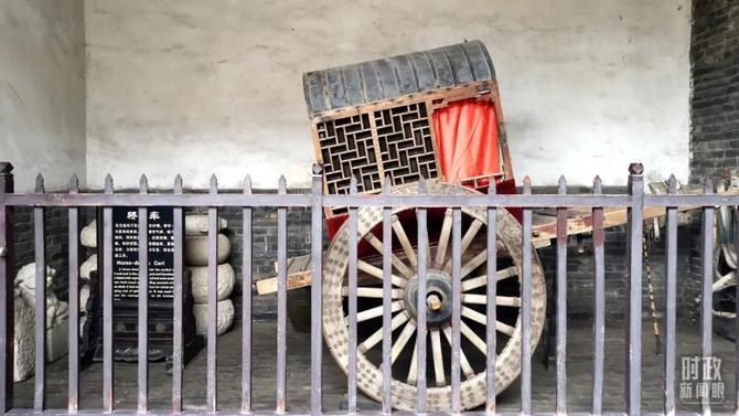 △平遥古城内展示的“轿车”。在交通不发达的历史时期,乘“轿车”出行是富贵的象征。(总台央视记者王晓东拍摄)