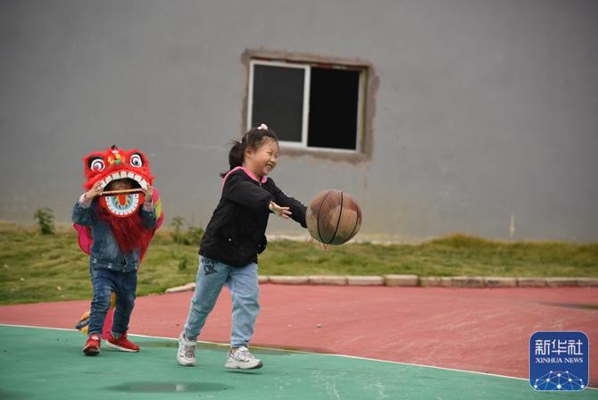 ↑小女儿(右二)生日当天,杨兴义为她买了最爱的玩具(1月25日摄)。新华社记者田建川摄