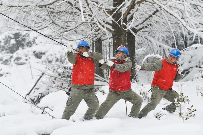 新华社武汉1月28日电 记者侯文坤 “快点搞!等会雪又要下大啦!”湖北省荆门市荆山余脉海拔500多米的裴山村,风雪呼啸,一声呼喊响彻山间。白茫茫中,几抹红色格外醒目,那是正在进行抢修的国网荆门供电公司栗溪供电所的电力工人。