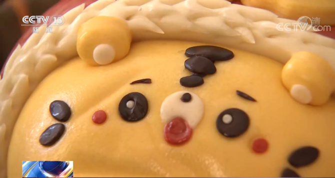 花馍艺人正在制作的这些花馍,虽然看起来五颜六色,但它绝不偏离本质,依然是老少皆宜的传统美食。这些颜色都是从瓜果蔬菜中提取的,比如,黄色是南瓜、绿色是菠菜,这些眼睛是一些豆类。这种花馍既能观赏,又能食用,还蕴含了祈福运、求平安等吉祥寓意。