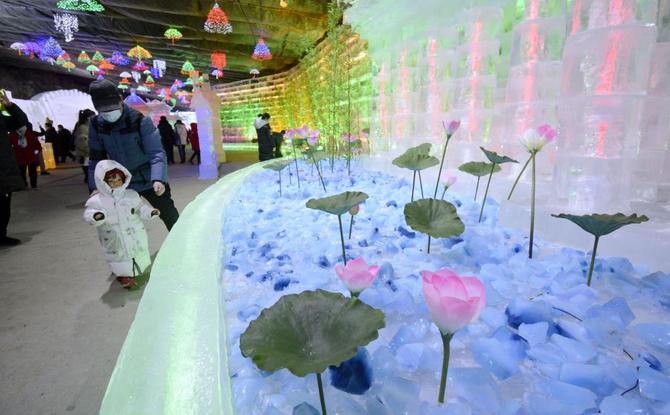 1月15日,2022年北京龙庆峡冰灯冰雪季在延庆区龙庆峡开幕。新华社记者 李欣 摄