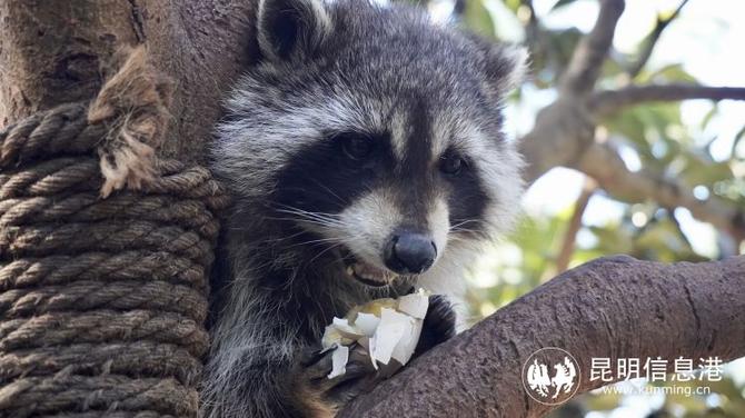 在浣熊家园里,小浣熊们正享受着一顿“鸡蛋盛宴”,它们用手抹抹脸,舔舔舌头,伸出小手就抓过来一个鸡蛋吃起来。而在孔雀园,饲养员为它们准备了玉米大餐,近百只孔雀在他们身边争先恐后地追逐、吃食。