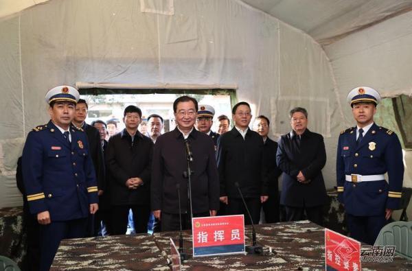 王宁、王予波来到昆明市五华区森林消防中队、官渡区会展西路消防救援站,察看各类消防器材装备,检查森林消防、城市消防应急值守等情况。王宁代表省委、省政府感谢大家长期以来为营造全省安全稳定的发展环境所作出的贡献,希望大家继续发扬奋斗、拼搏、奉献精神,保持良好精神状态,敢打硬仗、能打胜仗,以一流的装备、技术、管理和队伍,继续为全省经济社会发展作出新的贡献。