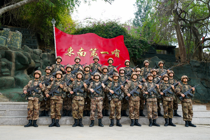 春节前夕,角屿岛的官兵在“东南第一哨”前面向祖国送上祝福