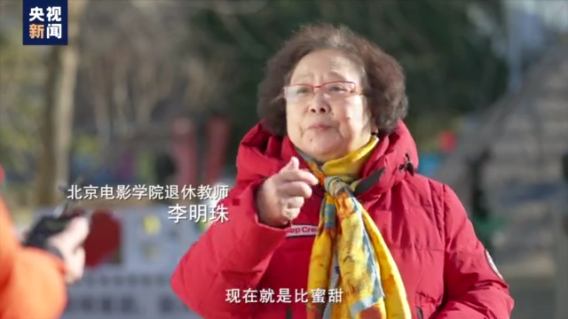 北京电影学院退休教师 李明珠:那时候有一个歌《我们的生活比蜜甜》,现在就是比蜜甜,所以骄傲,我骄傲我自豪。