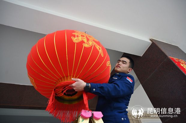 营区里到处都是消防员热情洋溢的面孔,他们充分发挥自己的想象力和创造力,将富有年味的红灯笼、拉彩条、剪纸、窗花等火红鲜艳的色彩布满营区的每一个角落,一个个大红灯笼高高挂起,一面面彩旗迎风飘扬,一幅幅春联喜气洋洋,简朴而又热烈的新春节日氛围深深地感染了每一名官兵。(昆明信息港 记者合宇聪 通讯员张如锋 周瑞祺)