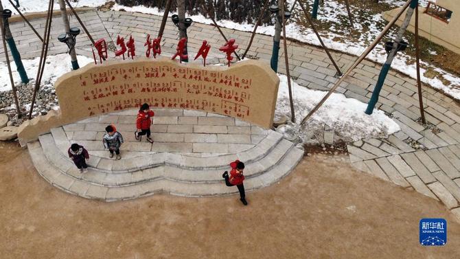 1月28日,小朋友在河北省平山县西柏坡镇北庄村(无人机照片)。新华社记者 骆学峰 摄