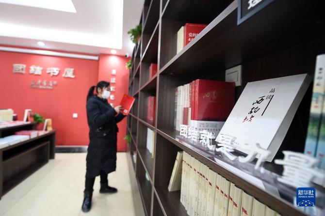 1月28日,在河北省平山县西柏坡镇北庄村团结书屋,工作人员在整理书籍。新华社记者 骆学峰 摄