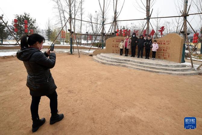 1月28日,游客在河北省平山县西柏坡镇北庄村游玩拍照。新华社记者 骆学峰 摄