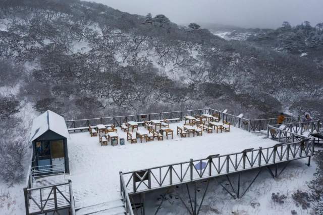 轿子山景区连日来发出多个公告,结合天气变化,适时关闭景区、限制入园人数、限制游览区域、游览时间等;
