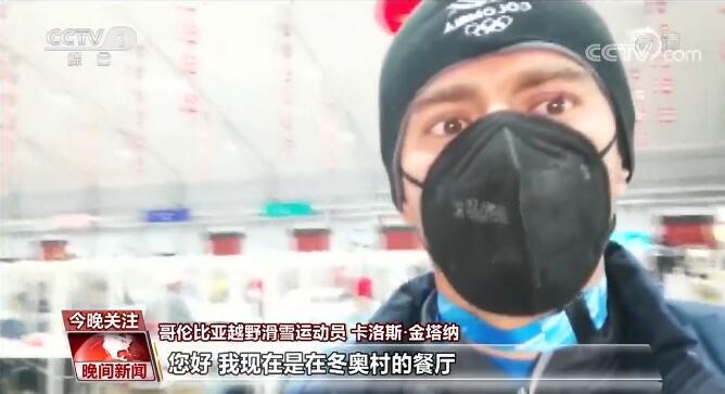 哥伦比亚越野滑雪运动员 卡洛斯·金塔纳:您好,我现在是在冬奥村的餐厅,向您展示一下它的样子,这是个综合性的餐厅,提供各类国际美食。