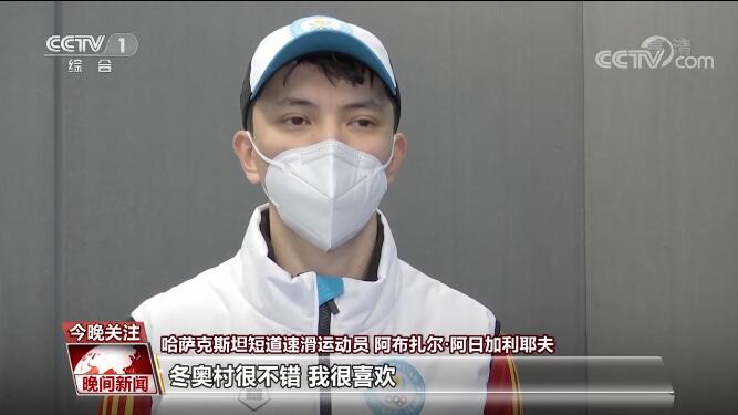 哈萨克斯坦短道速滑运动员 阿布扎尔·阿日加利耶夫:冬奥村很不错,我很喜欢。餐食也很丰富,我们可以在冬奥村吃到各种美食。