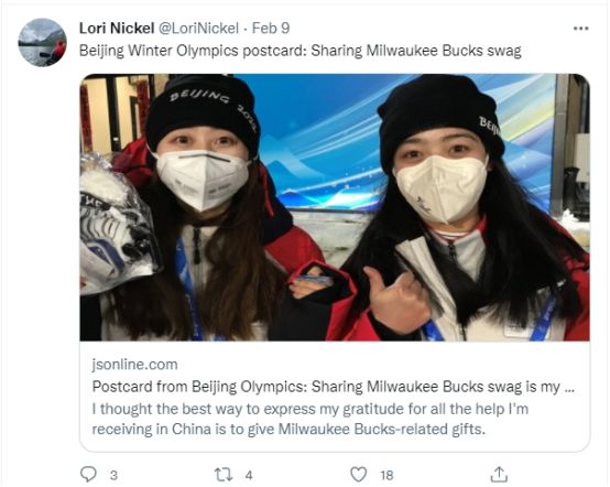 美国记者洛丽·尼克尔此前一直是NBA赛事的播报记者,得知观看NBA赛事的中国观众有很多,她在出发前特意准备了许多礼物,还附上了中英文的便签。让她倍感惊喜的是,她在送出礼物后得到了很多回礼。