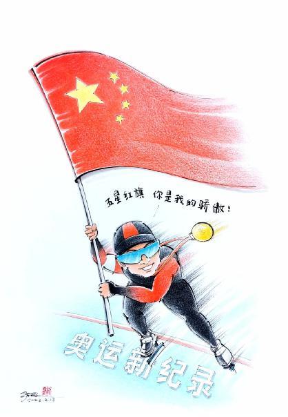 上海国际传媒港举行的“沪上漫画家绘冬奥”主题创作,邀请了沪上8位知名漫画家,共同围绕北京冬奥会赛程实时热点展开即兴创作。四年前,首次参加冬奥会的高亭宇在拿到铜牌时说道:“虽然颜色差不多,可是意义完全不一样”。如今,高亭宇奖牌换金色的愿望达成了!上海的漫画家们也以书画表达了对高亭宇愿望达成的祝贺。