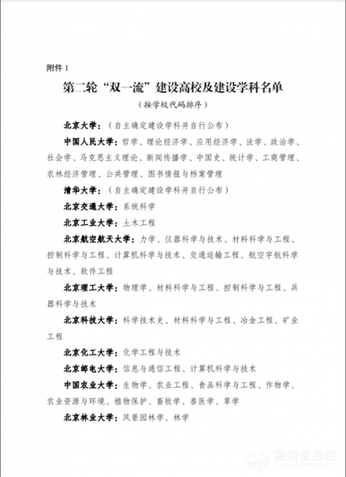 昆明信息港讯 记者姚仲恒 据教育部网站2月14日消息,由教育部、财政部、国家发展改革委印发《关于深入推进世界一流大学和一流学科建设的若干意见》,经国务院批准,“双一流”建设高校及建设学科名单更新公布,新一轮建设正式启动,其中云南大学民族学学科、生态学学科进入建设学科名单。