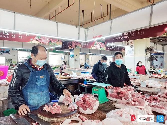 跟随陈裕锋的运输车,记者来到麻栗坡福宝农贸市场。市场内各摊点并未受到疫情影响,瓜果蔬菜一应俱全。市场肉店摊主庞胤告诉记者,疫情后他们一直正常经营,没有出现断货和肉价上涨等情况。肉店摊主李庄说:“虽然麻栗坡近期出现疫情,但是在各级政府领导下,我们的生意都正常经营,相信我们能够战胜疫情。”